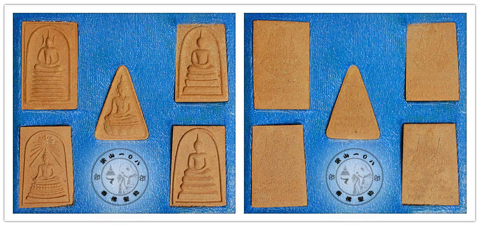Phra Somdej Set - (Mass Chanted) - Wat Phra Kaew - 2539 Limited edition 5 piece amulet set in original temple box. Size of temple box - H-10cm x W-11cm x D-2.6cm Size of amulet : H-3.5cm x W-2.3cm x D-0.6cm Material : Holy powder with temple stamp behind.