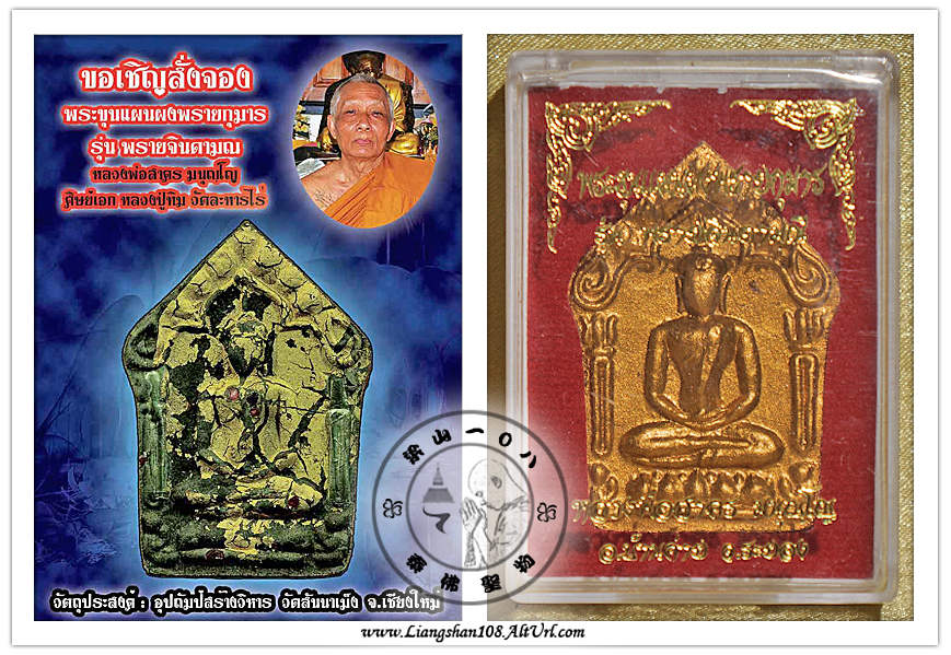 Limited edition. Made 9999pcs Serial number and temple coded. Material : Holy powder with copper takruts (Size - H-4.2cm x W-3cm x D-0.5cm)