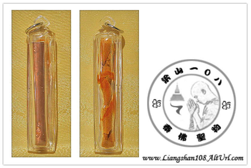 Limited edition. Made 299pcs only. Temple coded. Material : Copper takrut and monk's robe. (Size w/casing : L-6.5cm x W-1.3cm)