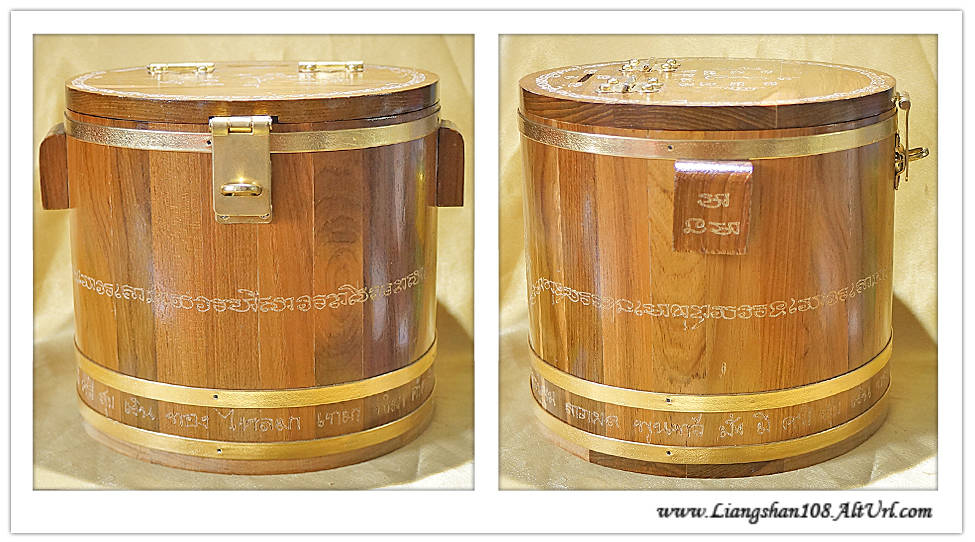 Material : Wood bucket with hand inscribe yants by LP Sam Ang.