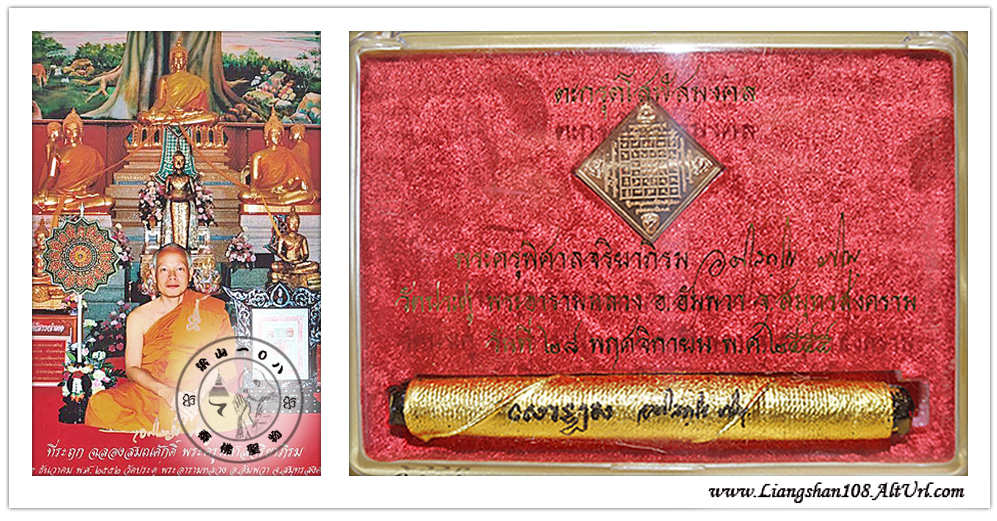 Material - Holy sheet with goldleaf paint takrut and nawa pidta rain with hand written yants and inscription.