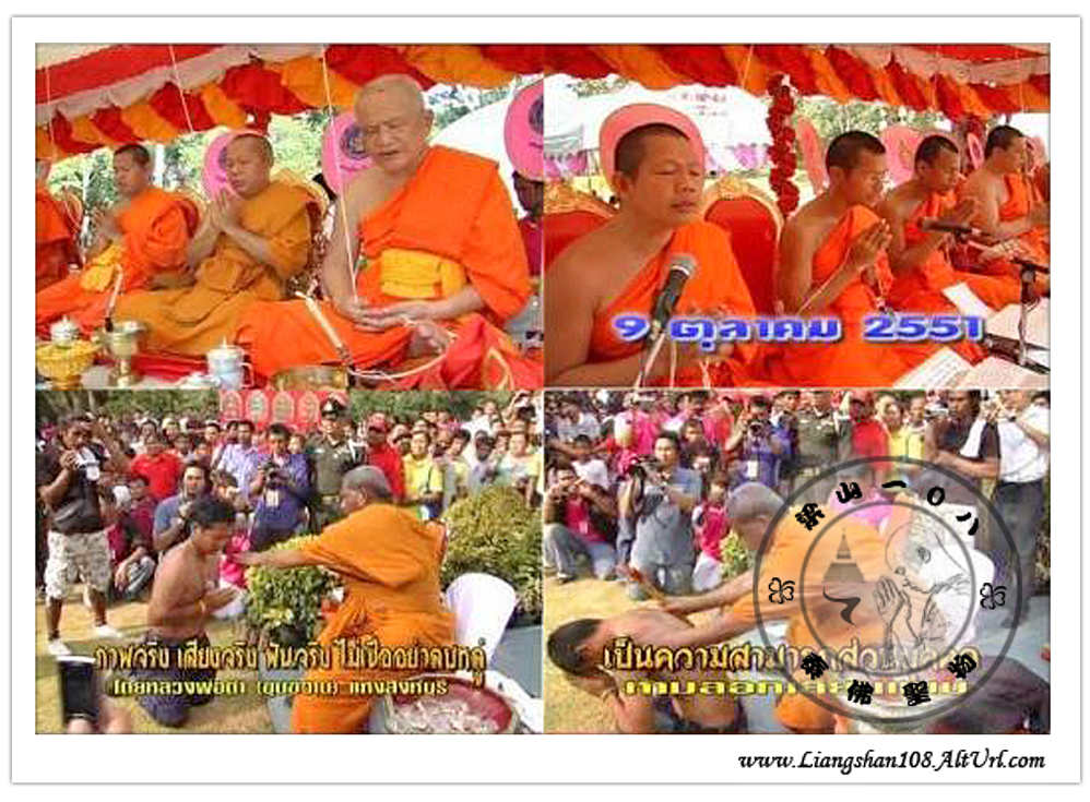 This axe batch Phra Khun Pean was mass chanted for 3 grand ceremonies featuring using axe to chop on worshiper against harm at Wat Palelai, Suphanburi - 2551