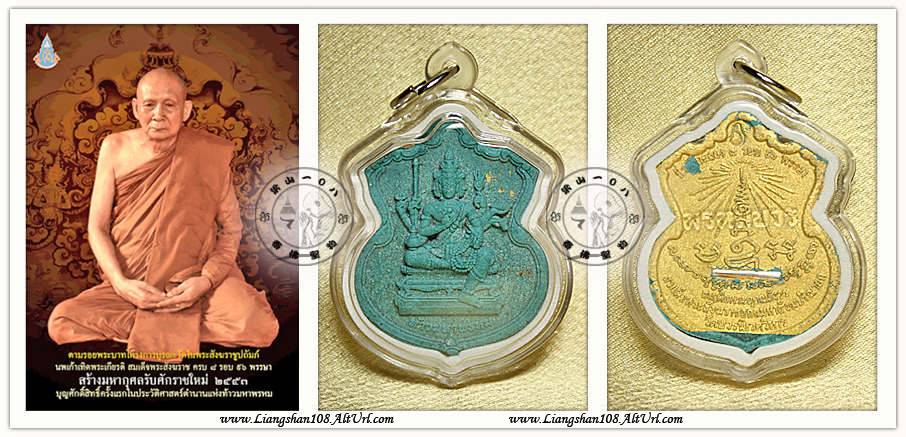 Phra Phrom - Kamakan Edition (w/plastic casing) - Wat Nopphakao ThaYiKaRam - 2553 Somdej Phra Nyanasamvara Somdej Phra Sangharaja 96 year old birthday batch. Limited Edition. Serial number coded. Material - Holy powder and 1 silver takrut.