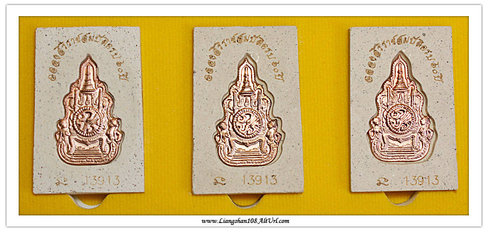 Phra Somdej Set (Celebrate Thai King 60 years Throne batch) - Wat Phra Kaew - 2553 Limited edition. Serial number and temple coded. (Size - H-3.8cm x W-2.2cm x W-2.4cm) (Material - Holy powder & royal temple rian)