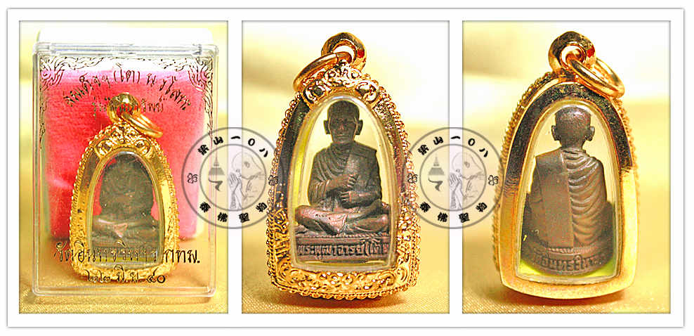 Somdej Toh Roop - (Nawa w/gold casing) - Wat Inn - 2540 Material - Nawa (Size - H-2.5cm x W-1.5cm) (Original temple box is included together with gold casing and amulet.)