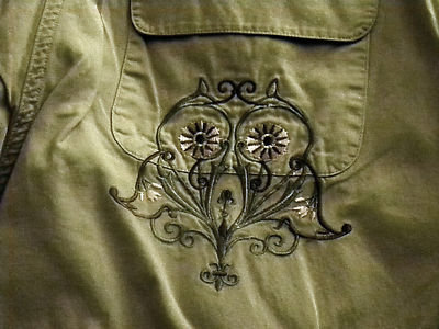 On the left leg as well as the right back pocket, there is a great looking design which is hard to describe. Please see the photos.