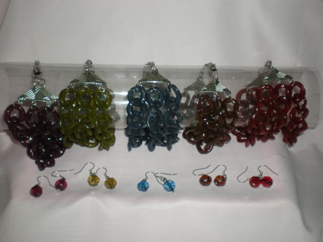 Blue plastic multi-chains bracelet attached to metal accents w/ matching earrings. Lobster claw clasp.​