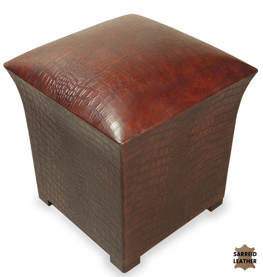 Bayou Croc Leather Footstool Dark Natural Finish Ottoman Stool Free Shipping New