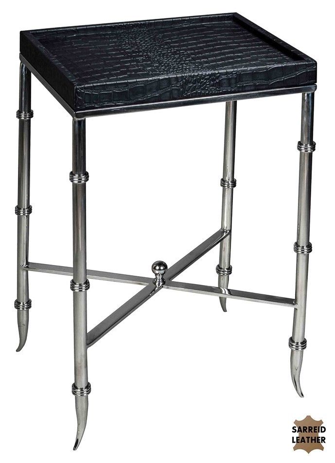 Black Croc Martini Table w/ Leather Top & Stainless Steel Legs Free Shipping New