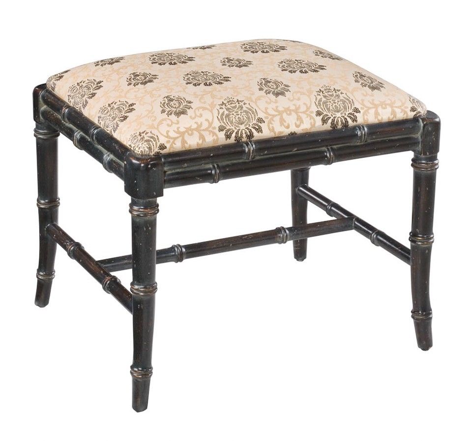 Black Stool Solid Walnut Bamboo Relief Floral Caribbean Fabric New Free Shipping