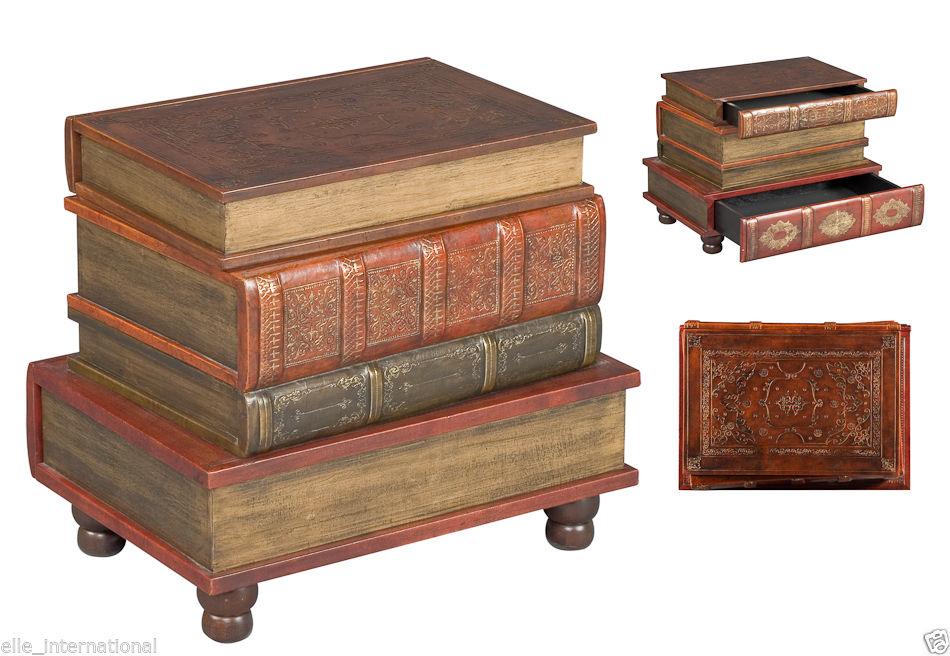 Antique Books Side Accent Table 2 Drawers Leather Wood Fabric Velvet New new