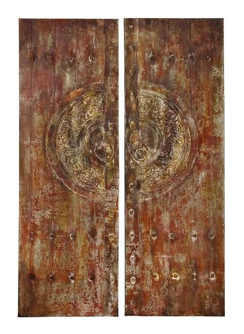 Give interiors a classy aesthetic appeal with this Canvas Art - Set of 2 which is a perfect fusion of art and culture. Hand made with fine detailing, this canvas set is a great accessory to plain walls and can add a subtle feeling of intense tribal culture to settings. It features hues of brown that blend perfectly well, enhancing the overall ambience of different types of decor. This canvas set is accented with a metallic frontal that complements the rugged brown wooden texture exceptionally well. With its pure association with ethnic art, the canvas redefines the conventional form of art and adds an antique touch to room settings. Crafted in China, this beautiful canvas set has a distinct appearance that makes it attractive in appearance. It is available in 2 size variants - 59" H x 20" W x 2" D, 59" H x 20" W x 2" D.