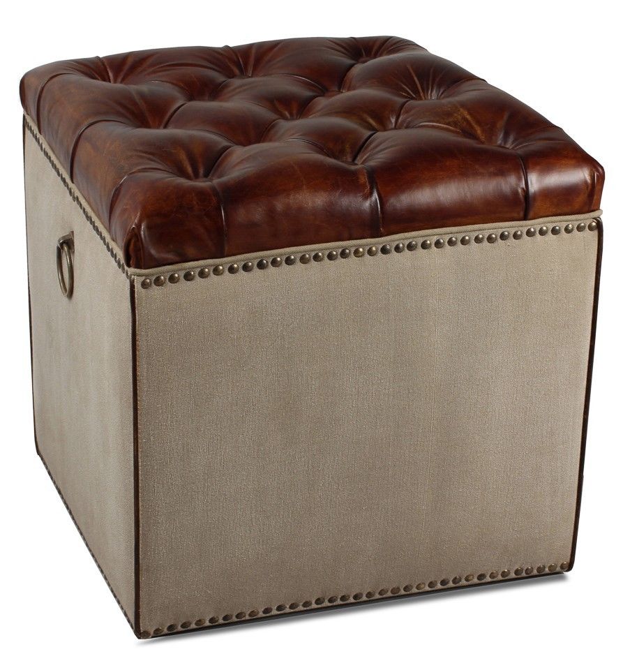 Canvas Footstool w/ Leather Top Brass Nailheads Free Shipping Brand New