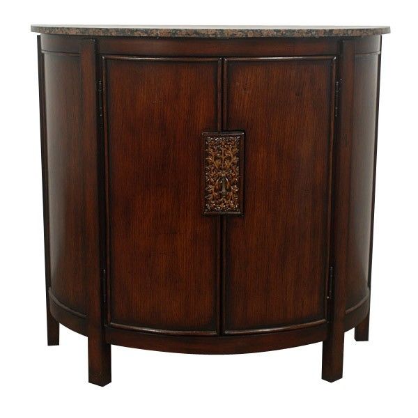 A beautiful chest an an incredible price today only. The Double Door Semi Circle Chest features all hardwood construction, beautiful solid granite top, curved design, and a large single shelf.