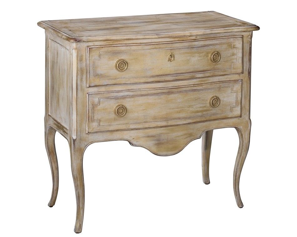 Chest Of Two Drawers Antique Style Gold Rub Finish Solid Walnut & Oak Brand New