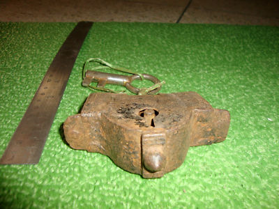 HAND FORGED ANTIQUE IRON LOCK WORKING CONDITION