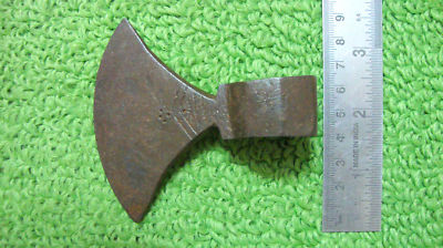 ANTIQUE HAND FORGED IRON AXE , METAL IRON , MARKS AND WEARS VISIBLE .