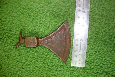 ANTIQUE HAND FORGED IRON AXE , CARVING WEARS