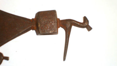 FIGURED IRON AXE HAND MADE IN SINGLE PIECE OF IRON NO JOINTS , NICE PEACKOK FIGURE .