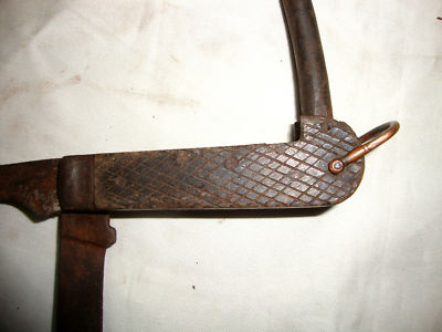 ANTIQUE IRON FOLDING KNIFE IN GOOD WORKING CONDITION . FITTINGS MADE OF WOOD .