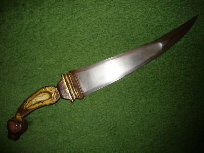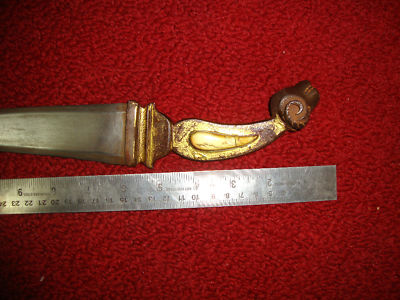 HAND FORGED ANTIQUE KNIFE WITH FIGURE GOLD POLISHED