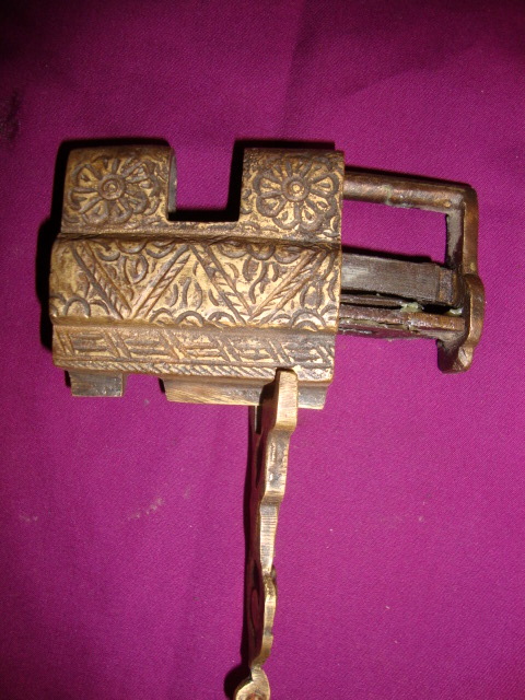 A NICE SHAPED CHINESE BRASS LOCK SEE BELOW SCANS HOW TO OPEN