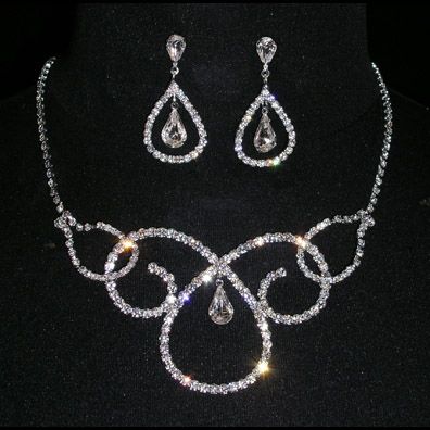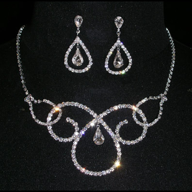 Large Loop Necklace and Earring set. Necklace has a tallest point of 2". The necklace is adjustable from 15.25" - 18.5". Plated in Sterling Silver. A complimentary matching pair of 1 5/8" tall earrings will be included with each necklace ordered. The Perfect accessory for any occasion or outfit. Spoil yourself with this glamorous rhinestone studded beauty that will be sure to earn you a few well deserved compliments. This is affordable luxury!