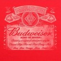 Officially licensed Budweiser Classic Label Red T-Shirt. Features a white faded Budweiser logo on the front. 100% cotton.
