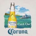 Officially licensed Corona Extra Catch One GrayT-Shirt. Features a beach scene with a Corona bottle and says, 'Catch One.' 100% cotton.