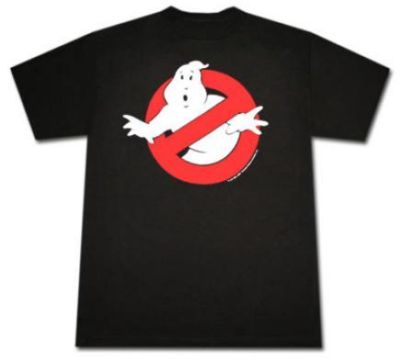 Officially licensed Ghostbusters Logo Black T-Shirt. Features the familiar Ghostbusters movie logo on the front. 100% cotton.