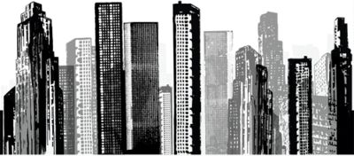 Cityscape Skyline Mural 38.75" x 17" Wall Decal Wallpaper Black Silhouette COOL