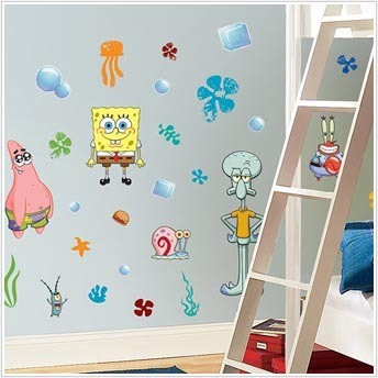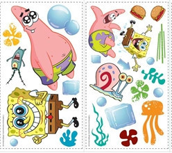 and colorful wall decals includes Spongebob, Patrick, Mr. Krabs,