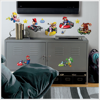 These repositionable wall stickers feature Mario, Luigi,