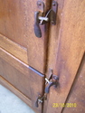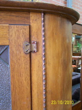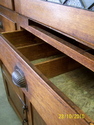 ALL ORIGINAL ... . .. ... Art Deco ...... circa late 1920's .... Kitchen SIDEBOARD in Timber Australian OAK ( Sides are Oak Timber veneer to create semi- shape) in Tudor style edging and LEAD LIGHT also original glass doors. Timber has a lovely rich color which can only happen with age and care. All metal handles complete and rear also has twin metal mesh vents both intact. All Doors and Drawers open with ease and one cabinet is still lined in Tin which would have been used as fridge box. The item has had one owner and is in original condition with limited use and has been kept inside kitchen of " servants quarters" ( which have not been used for a number of years ) of estate. This item has NO borer and never has.