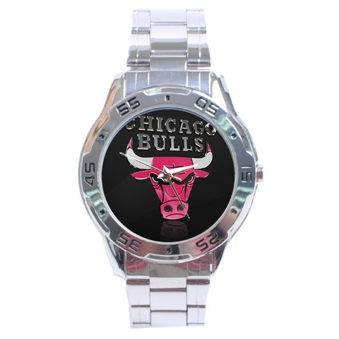 Stainless Steel Chrome Finish Mens Watch The watch casing measures approx. 1 1/2" in diameter The watch band fits most wrists from approx. 6 1/2" to 8" Stainless steel back Miyota watch movement made by Citizen The battery for the watch is included