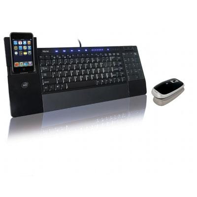 iConnect Media Keyboard & Wireless Laser Mouse. Charge & synch iPod with iTunes. Touch sensitive media keys. 2 rotating USB 2.0 ports. Rubberized wrist rest. 3.5 mm headphone jack. Universal dock fits all docking iPod models. BLACK.