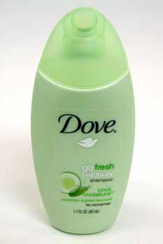 Dove go fresh therapy shampoo. Cucumber & green tea scent. 1.7 fl oz, plastic bottle." Case Pack 36