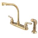 Two Handle Deck Mount, 4 hole Sink application, 8 Centerset, Non-Matellic (ABS) Side Spray, Fabricated from solid brass material for durability and reliability, Premium color finish resist tarnishing and corrosion, 360 degree turn swival spout, 1/4 turn On/Off water control mechanism, 1/2 - 14 NPS male threaded inlets, Duraseal washerless valve, 2.2 GPM (8.3 LPM) Max at 60 PSI, Integrated removable aerator, 7 spout reach from faucet body, 10-1/2 overall height, Ten Year Limited Warranty to the original consumer to be free from defects in material and finish., Solid Brass Construction, Premier Finish