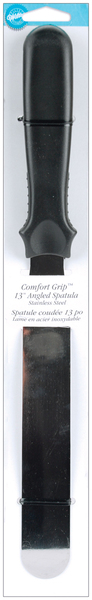 Angled Spatula-13"". WILTON-Angled Spatula. This 13in straight spatula has a black shaped handle for comfort and control. Features: no-slip thumb rest; superior stainless steel blade; dishwasher safe. Specifically developed with the cake decorator in min" Case Pack 1