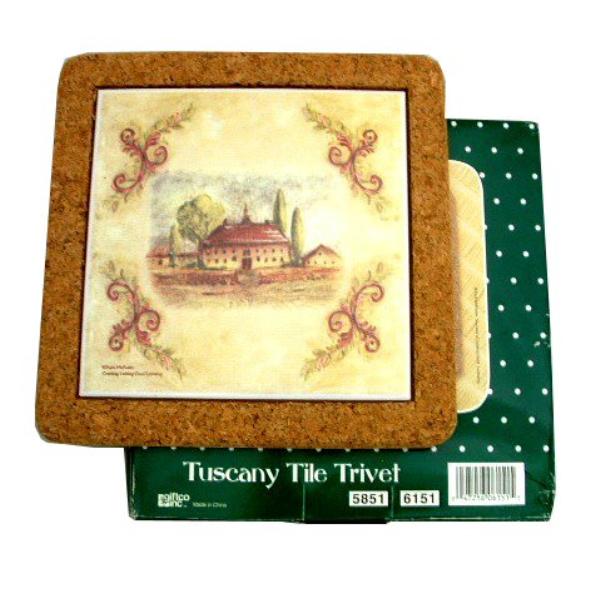 Tuscany scene ceramic tile & cork trivet- artwork by Katy McRostie, hook included(can be hung). Size: 7.5"" x 7.5""." Case Pack 72