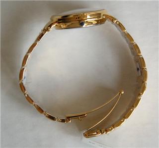 Bracelet: Gold-tone stainless steel bracelet and bezel Case and back: Stainless steel Movement: Japanese Quartz Crystal: Mineral Crown: Push/pull Clasp: Push button deployant Hands: Gold tone hour, minute & second sweep Bracelet Measurements: 8-1/4" L x 19mm W Case Measurements: 36mm Water Resistance: 5 ATM – 50 meters – 165 feet Warranty: Limited lifetime warranty from Lucien Piccard Please see my other items; I gladly combine shipping on multiple wins. Shipping cost includes insurance.