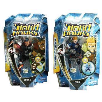 "Storm Hawks Assorted Action Figures. The sky is never the limit with Storm Hawks! Play as your favorite characters from the hit Cartoon Network cartoon, Storm Hawks! Protect the skyways and keep the world safe from the evil empire. Each character has a special talent and is fully posable. Junko has a whirl and blast punching action, Finn has snap to blast trigger action, and Aerrow has twist and whirl sword action. Each package also contains a bonus DVD included! Collect them all! Requires 3 button cell batteries (included, although some may need to be replaced). For ages 3 and up." Case Pack 8