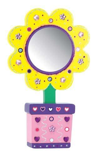 Your little crafter can make this wooden flower mirror bloom with beauty! A glorious flower stays fresh in an elegant vase in this decorate-your-own kit. Craft glue, stickers, jewels and golden glitter are conveniently tucked into a wooden tray just waiting to adorn this glamorous two-piece mirror set..
