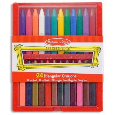 These ingenious, triangular shaped crayons won't roll away. Made of plastic, not wax, for additional durability, this set of 24-rainbow color, non-toxic crayons stay on the table- just where your little artist put them! They pack into their own sturdy, plastic flip-top case for easy clean up. The unique shape will help develop the preferred grip for later writing skills.