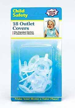 "Protect little fingers from big shocks with this 18 pack of clear white plastic covers that fit standard 2 pronged electrical outlets. Diameter is 1 1/4"". The set comes in blister card package with UPC code." Case Pack 60