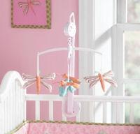Great coordinate to stimulate your baby with satin colorful dragonflies. Musical mobile can be wound and played. Fatures a start and stop switch. Made in China.