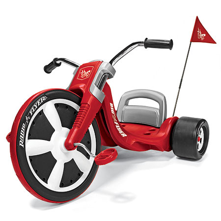 Performance grip treadReal chrome handlebarsRealistic gaugesComfortable molded handgrips3-position adjustable seatMega-wide rear slicksRacing pennant for child safetyAges 3-7