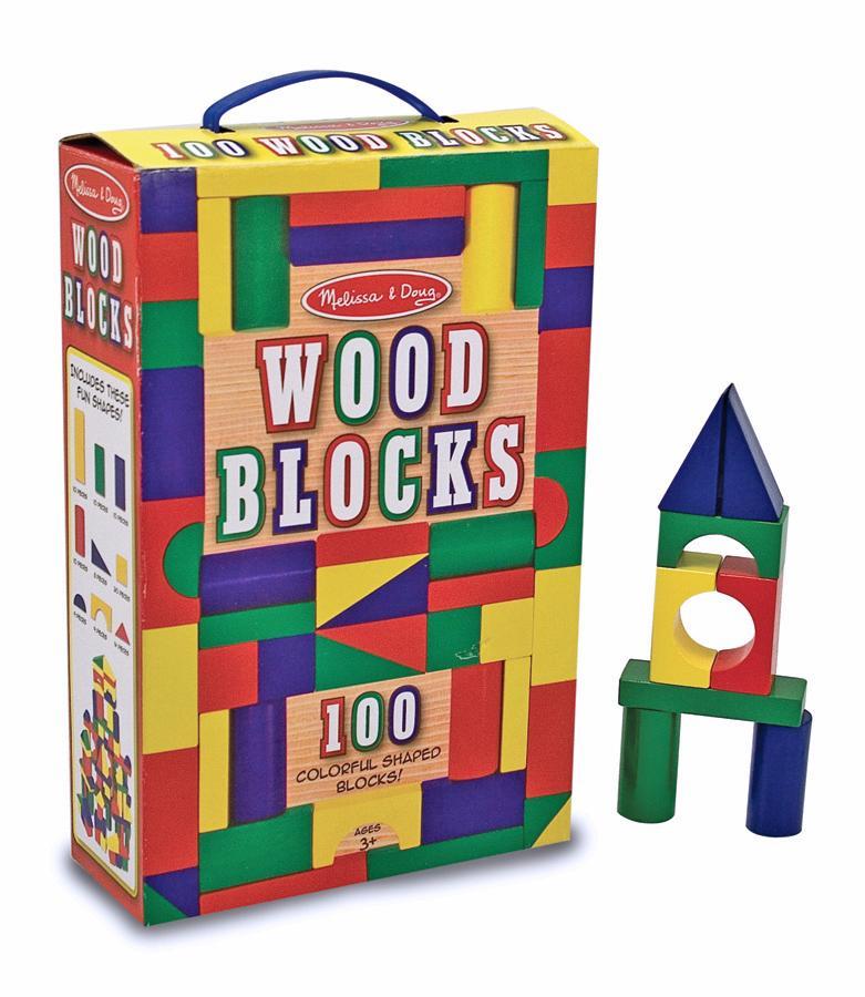 100 wooden blocks in four colors and nine shapes for your little builder to stack, build, and knock down! Bright, non-toxic colors add to construction and sorting fun.