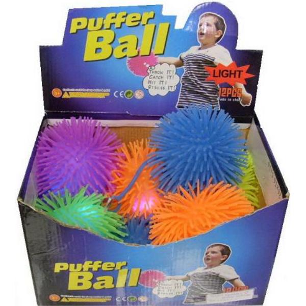 "Puffer balls large around 6.5 inches. Light up balls, comes in assorted colors. Throw them, play with them. Soft and squeezable." Case Pack 96