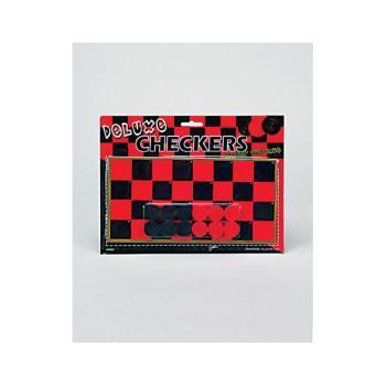"The board of this checkers set is 9 3/4"" x 9 3/4"" and is cardboard. The plastic checkers diameter is 7/8"". Comes with game directions. Blister carded w/UPC code. Imported." Case Pack 72